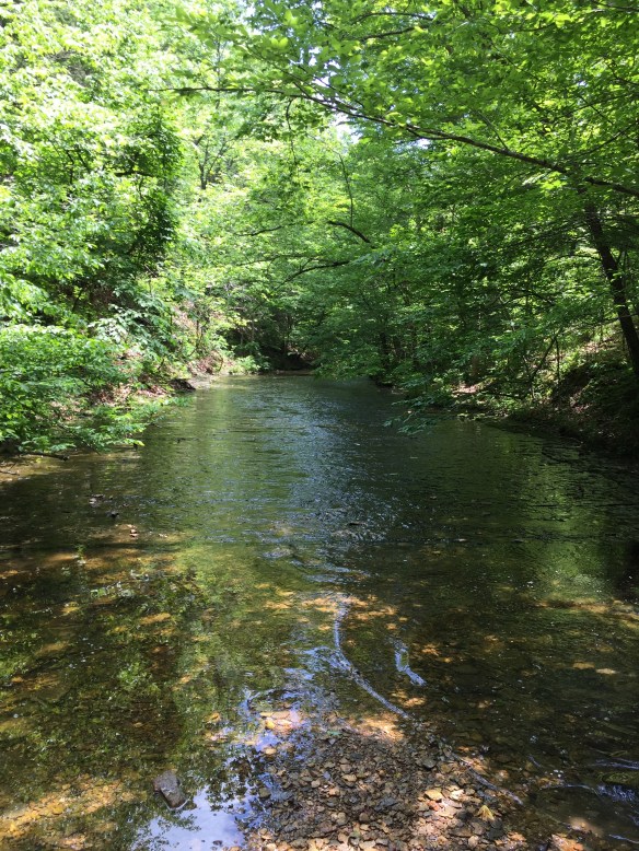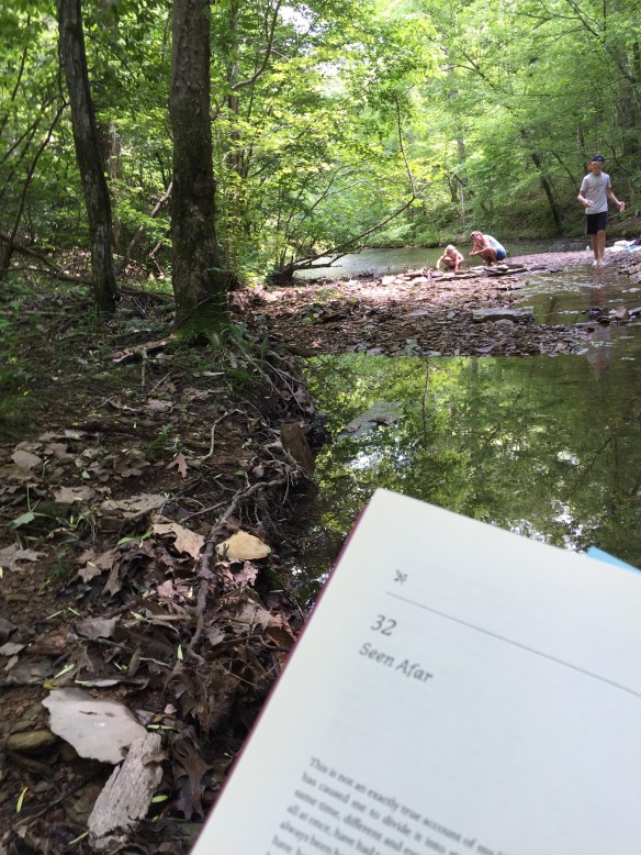 I have a confession: after years of publicly describing my affection for the writing of Wendell Berry, yesterday I finished Jayber Crow for the first time. I cried as discreetly as possible over the heartbreakingly beautiful final pages as I sat alongside this serene creek that feeds into the Cumberland River and among the less serene noises of my family and our friends playing in the creek.